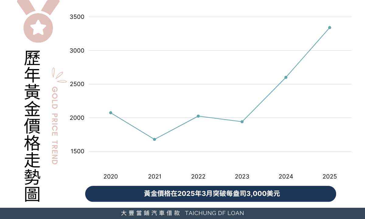 | 中國與東協局勢緊張 | 2025年4月 | ↑ 台幣金價一錢達3,000元高點 |